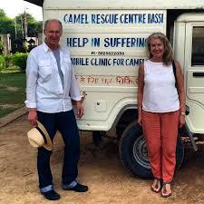 Jeannette is seen here with Ace posing next to the Camel Rescue Ambulance in Jaipur, India.